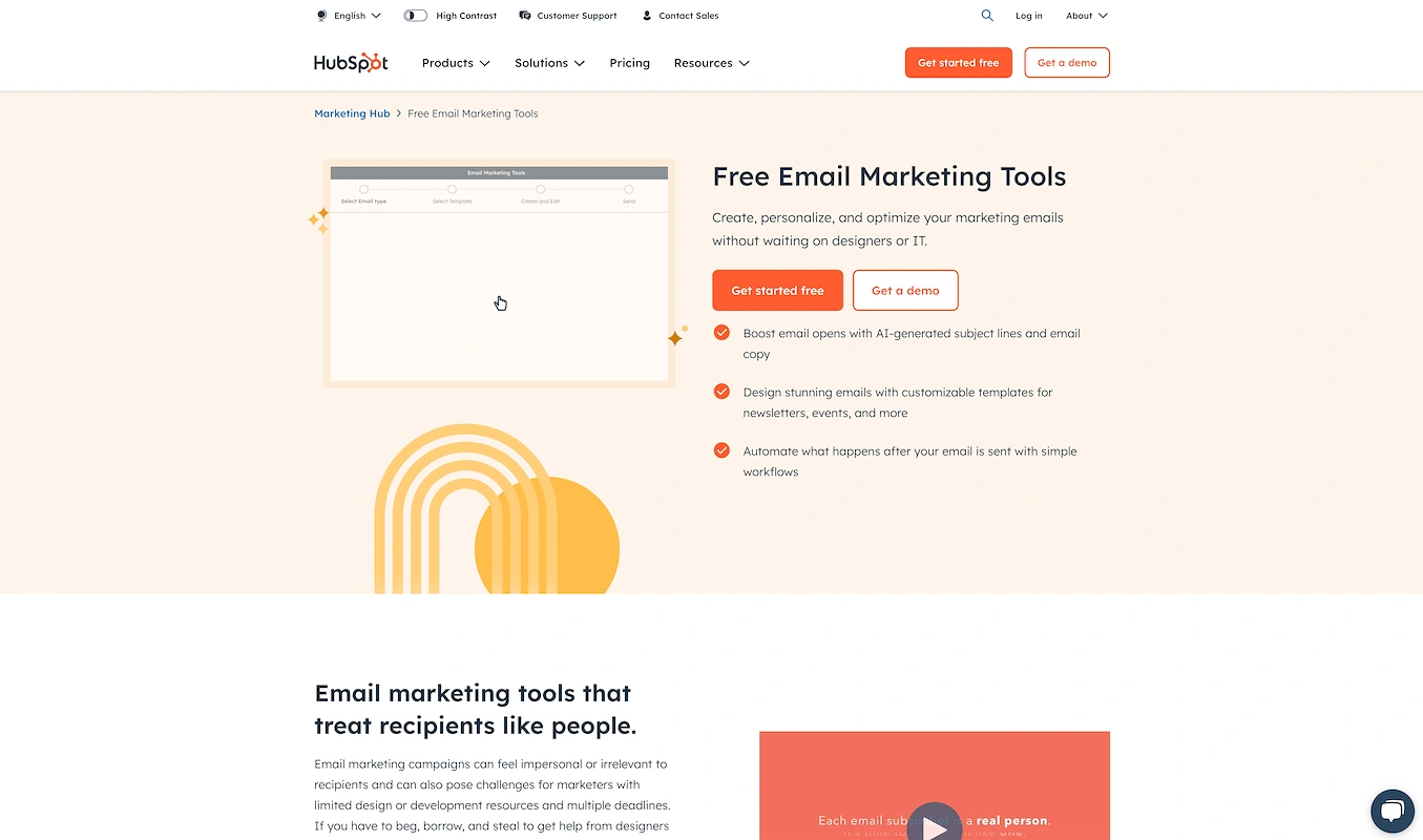 Hubspot Email Marketing offers tools to create, personalize, and optimize marketing emails without needing designers or IT support. Features include AI-generated subject lines, customizable templates, and automation workflows to improve email marketing efficiency and effectiveness.