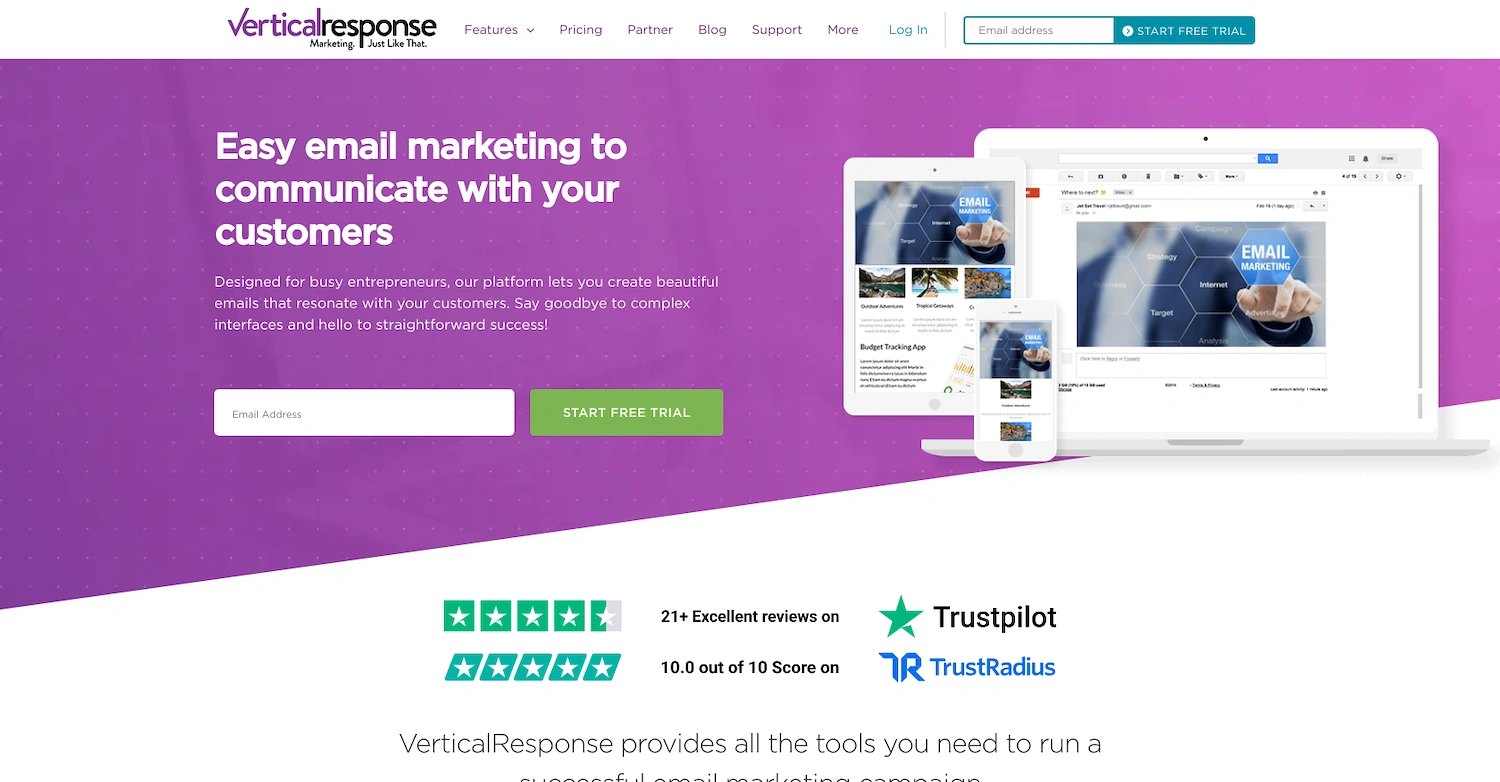 Vertical Response offers tools for creating and managing email marketing campaigns. These include an email editor, automated follow-up emails, a landing page builder, advanced reporting, and a surveys creator.